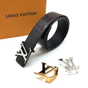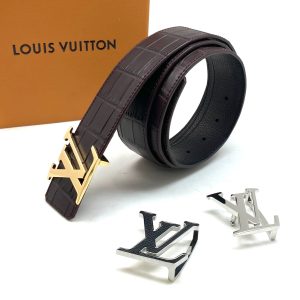 LV ремень крокодил джинсовый съемная пряжка темно-коричневый