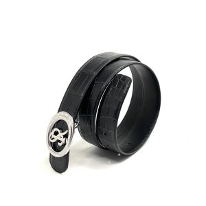 SR ремень крокодил джинсовый съемная пряжка черный