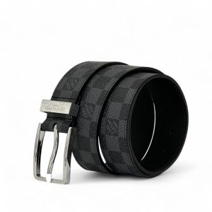 LV ремень двухсторонний синий в новую шашку-черный гладкая кожа пряжка LV серебро