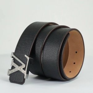 LV ремень кожа Togo черно-коричневый пряжка LV серебро