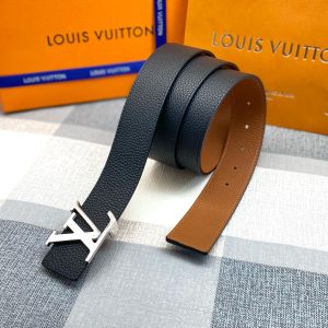 LV ремень кожа Togo черно-синий пряжка LV серебро