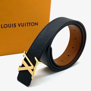 LV ремень кожа Togo черно-коричневый пряжка LV золото