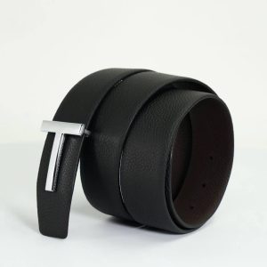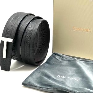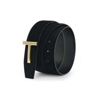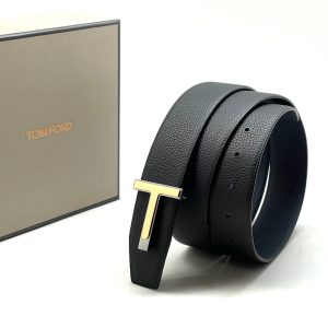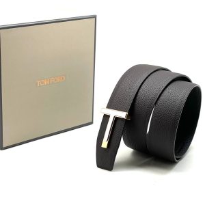 TOM FORD Ремень черно-коричневый выпуклая золотая буква Т на черном основании