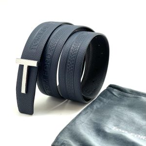TOM FORD Ремень черно-синий, выпуклая золотая буква Т на серебряном основании
