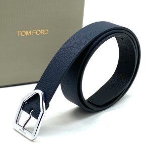 TOM FORD ремень кожа эпсом черно-синий съемная пряжка черная эпсом в серебре
