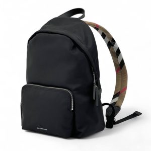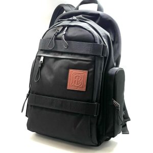 BURBERRY рюкзак текстиль черный коричневое кожаное лого