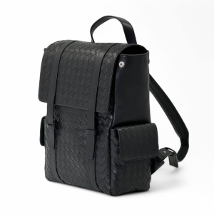 BV рюкзак теленок широкое плетение + гладкая кожа черный с клапаном