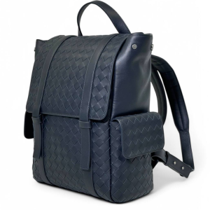 BV рюкзак теленок широкое плетение и гладкая кожа синий с клапаном