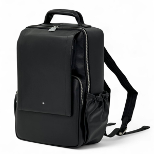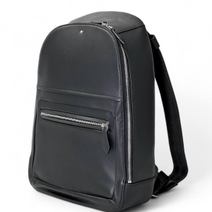 MONTBLANC рюкзак из черной гладкой кожи с глубокой молнией и наружным карманом на молнии