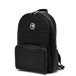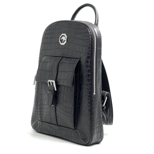 SR рюкзак тонкий из крокодила карман с пряжкой спереди черный