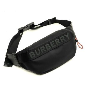 BURBERRY поясная сумка нейлоновая черная с вышитой надписью BURBERRY