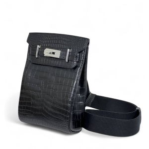 HERMES слинг черный из кожи крокодила с 2 хлястиками и фирменным замком
