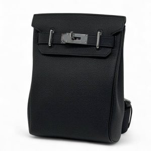 HERMES слинг черный с 2 хлястиками и фирменным замком