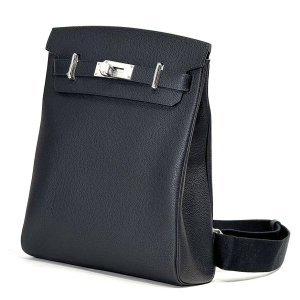 HERMES слинг черный с 2 хлястиками и фирменным замком большой