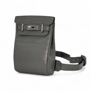 HERMES слинг графитого цвета из кожи крокодила с 2 хлястиками и фирменным замком
