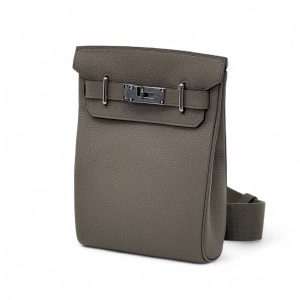 HERMES слинг серый с 2 хлястиками и фирменным замком