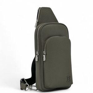LV слинг бледно-оливковый кожа тайга логотип в тон с большим передним карманом