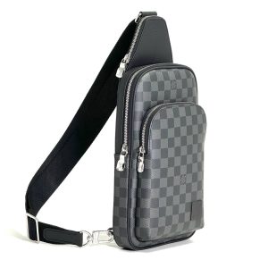 LV слинг канва серая шашка с большим передним карманом и кожаной нашивкой
