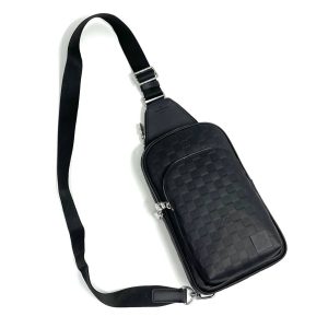 LV Слинг черный кожа шашка большой карман спереди