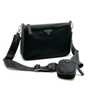 PRADA мессенджер нейлон черный с подвесным кошельком и цепочкой