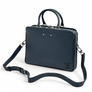 LV портфель с ремнем синий кожа тайга кармашек сбоку между кожаными ремнями