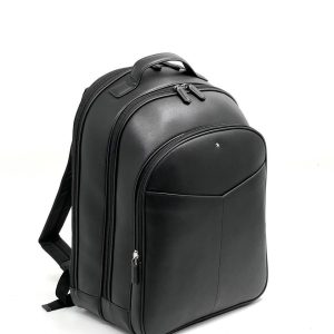MONTBLANC рюкзак из черной гладкой кожи с двумя большими отделениями и большим карманом на молнии
