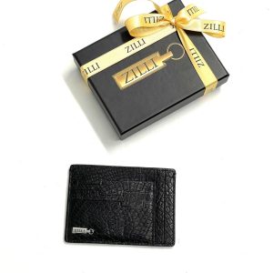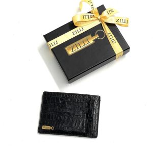 ZILLI визитница крокодил 6 визиток черная логотип золото