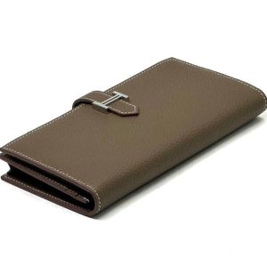 HERMES кошелек кожа Того с хлястиком бежевый фурнитура H серебро