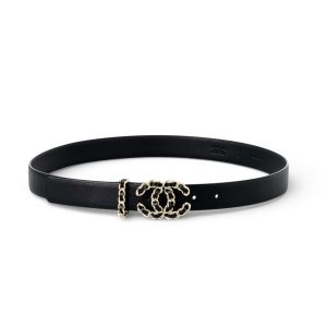 CHANEL ремень 35 мм гладкая кожа черный золото