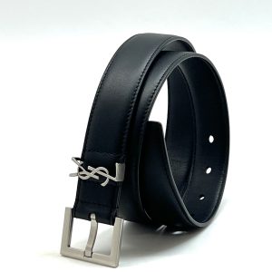 YSL ремень черный узкий гладкая кожа с пряжкой золото YSL