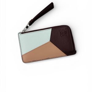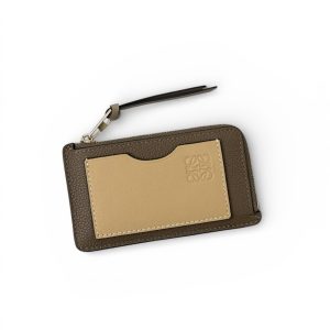 LOEWE визитница на молнии коричневая с бежевым карманом