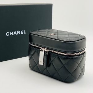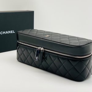 CHANEL клатч VANITY зернистая черная кожа в клетку
