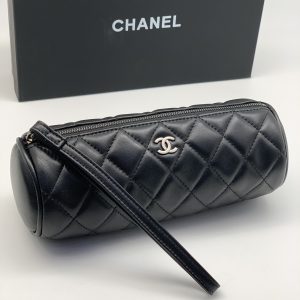 CHANEL косметичка тубус кожа гладкая в клетку черная