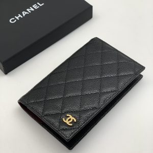 CHANEL портмоне кожа Caviar в клетку черная логотип золото
