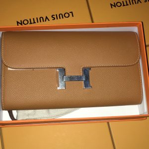 HERMES кошелек большой с клапаном механическая застежка кожа эпсом кэмел
