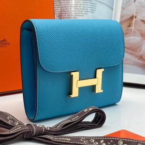 HERMES кошелек маленький с клапаном механическая застежка кожа эпсом голубой