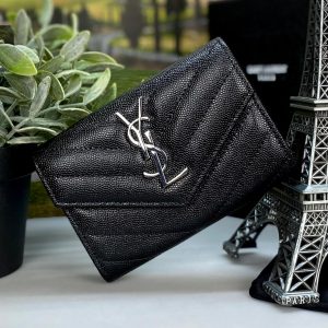 SL портмоне с окошком и монетницей на молнии из черной кожи CAVIAR с логотипом YSL серебро