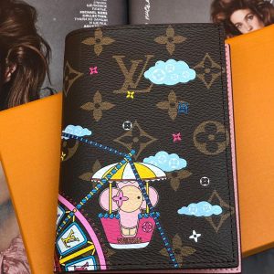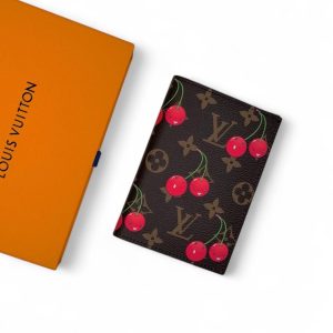 LV обложка на паспорт вишенки коричневая монограмма красная внутри