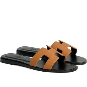 HERMES шлепанцы H кожа эпсом кэмел