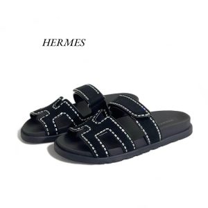 HERMES шлепанцы на перемычке черная замша с стразами