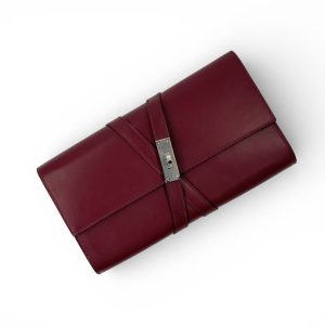 HERMES клатч бордовый кожа бокс с хлястиками серебро