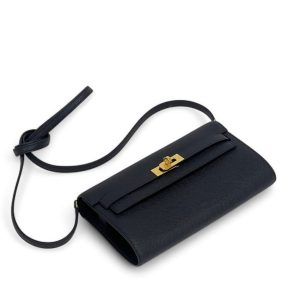 HERMES клатч POCHETTE 22 см черная кожа крокодила золото