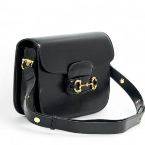 GUCCI сумка черная из гладкой кожи с золотой фурнитурой