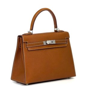 HERMES Kelly 28 см сумка кожа Барения кэмел серебро