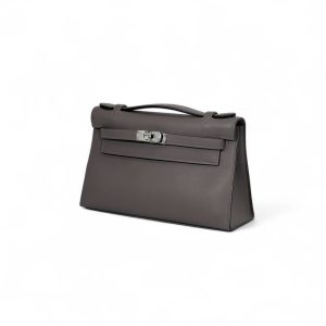 HERMES клатч POCHETTE 22 см серая кожа свифт серебро