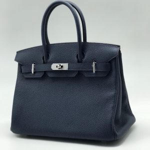 HERMES сумка Birkin кожа Того 30 см темно-синяя фурнитура серебро