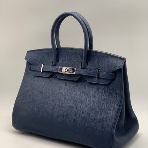 HERMES сумка Birkin кожа Того 35 см синяя фурнитура серебро