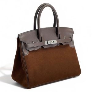 HERMES сумка Birkin замша 30 см коричневая серебро