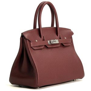 HERMES сумка Birkin полуручная кожа Того 30 см бордовая серебро