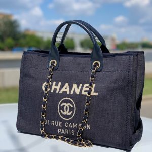 CHANEL сумка Shopping текстиль темно-синяя белый логотип